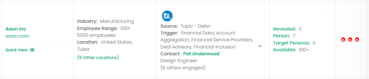 This company triggered around six topics in the same event, which meets the threshold for a 3 Spike, indicating much stronger buying intent.