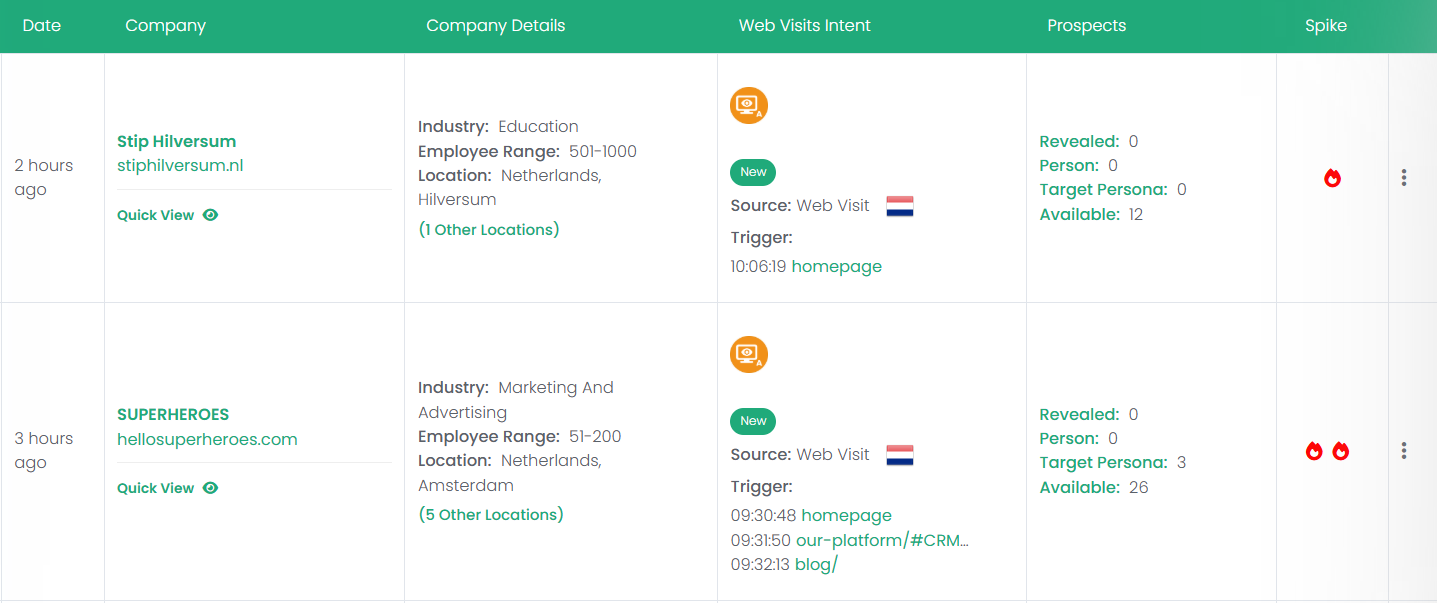 - IP Matching: Website tracking uses IP recognition to identify the company visiting your site.