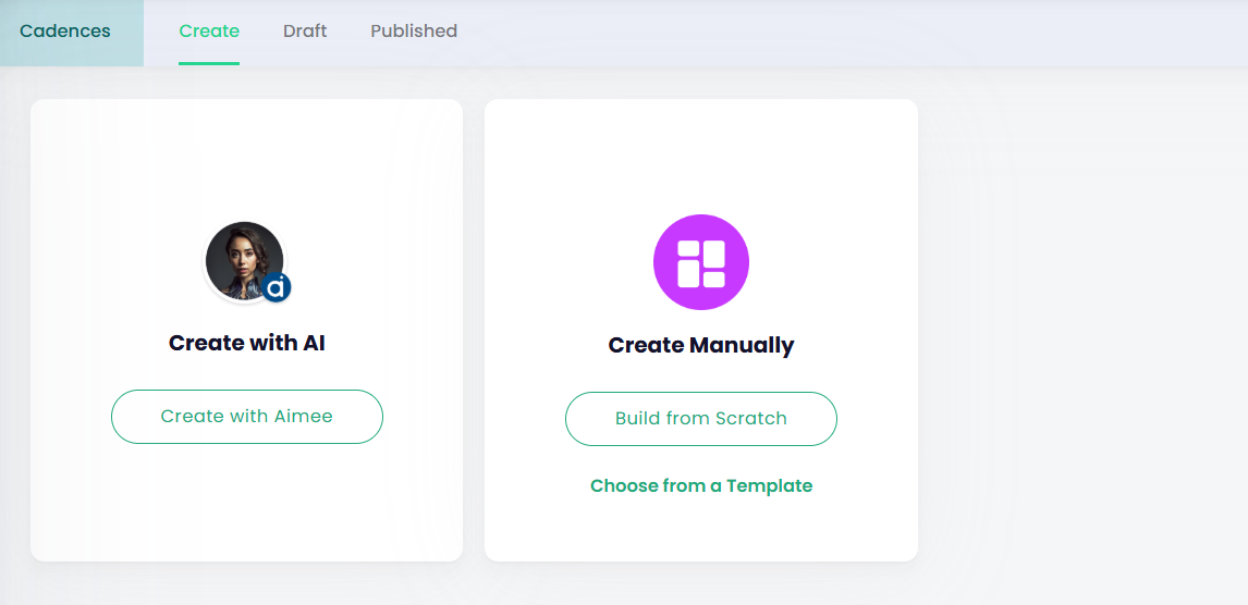- Build from Scratch → Create a fully customised cadence step by step, giving you complete control over the structure, content, and timing.
