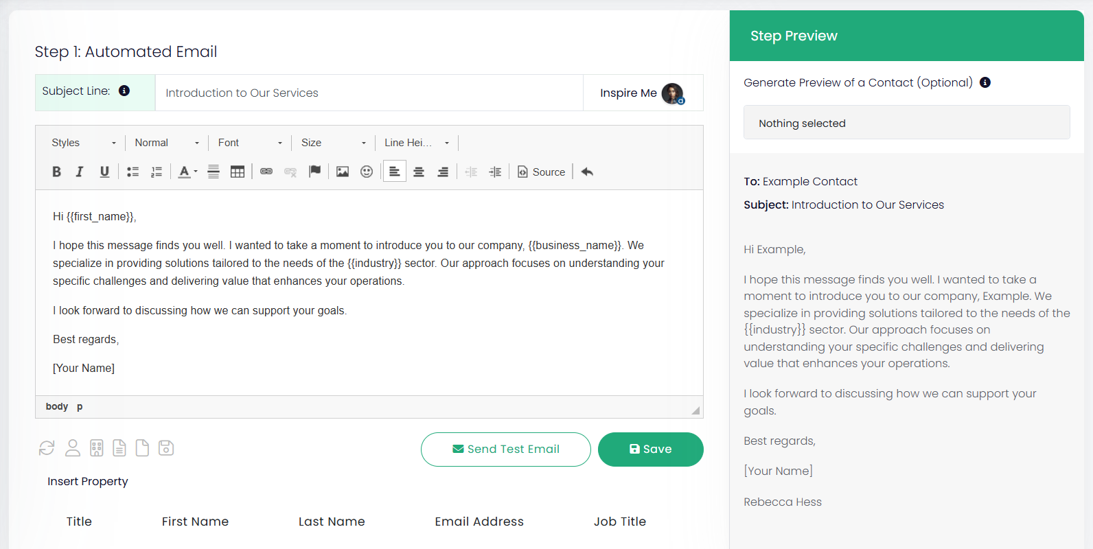 - Personalise content with tokens like {{first_name}} or {{business_name}}.